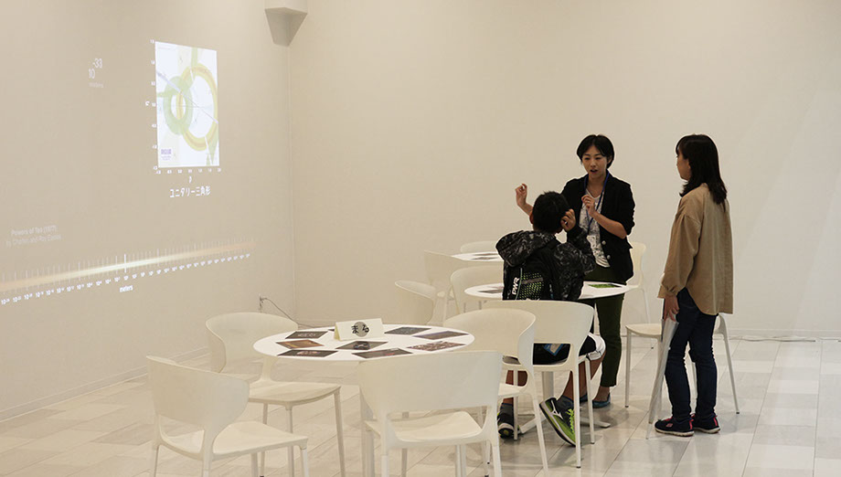 KMIとITbMの研究者が,どのようなスケールでどのようなモノを研究対象として扱っているかを,Powers of Ten (Charles & Ray Eames, 1977)のスケール軸に乗せて,◯△□のカタチを切り口に紹介する展覧会.